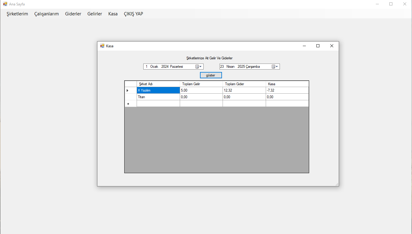 Şirketinize ait çalışanları, gelir ve giderlerinizi tutabileceğiniz masaüstü uygulama