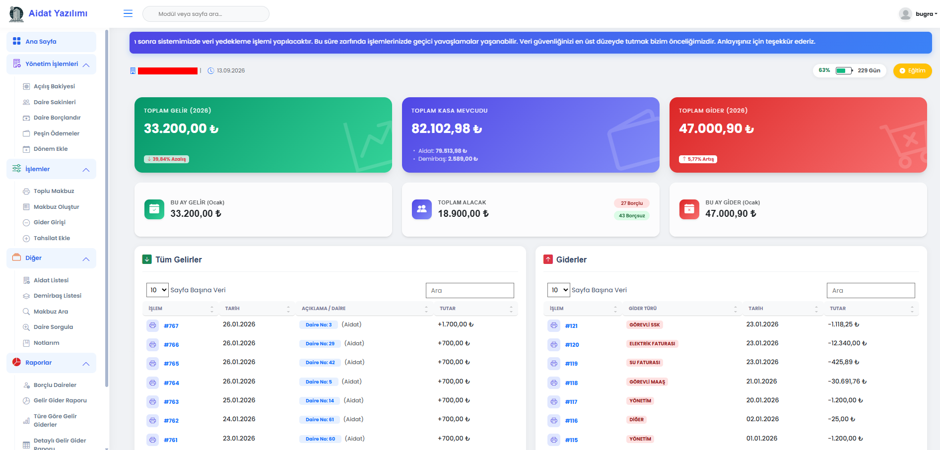 ASP.NET MVC mimarisi ve Monolitik yapı ile geliştirilmiş aidat ve gider yönetim platformu