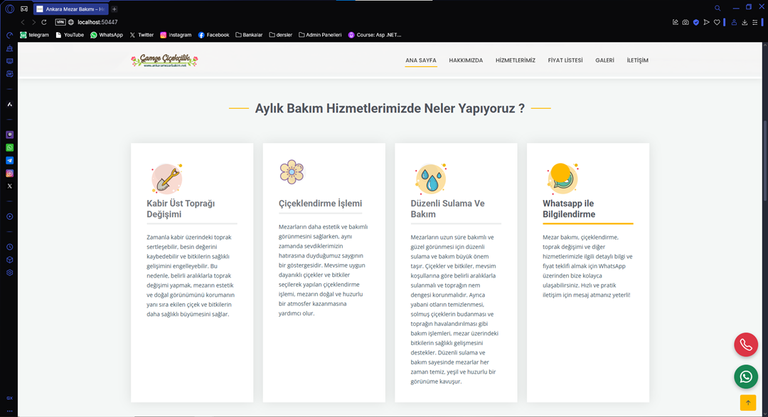 ASP.NET MVC ile benden istenen mezar bakım sitesini yapıp SEO ayarını yaptım. Admin panelinden toplu resim yüklenebiliyor.