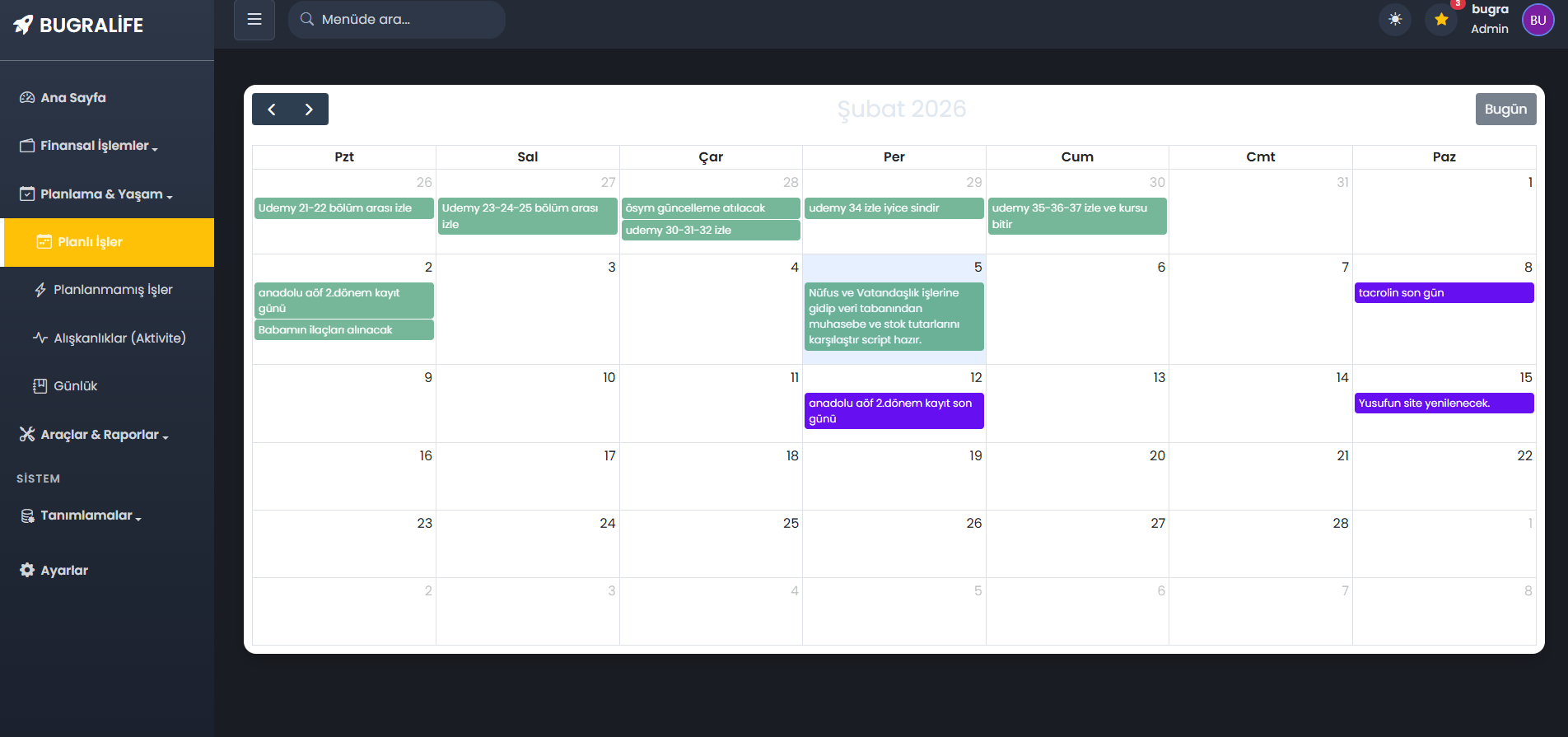 SECURE PERSONAL DASHBOARD (BUGRALİFE)
