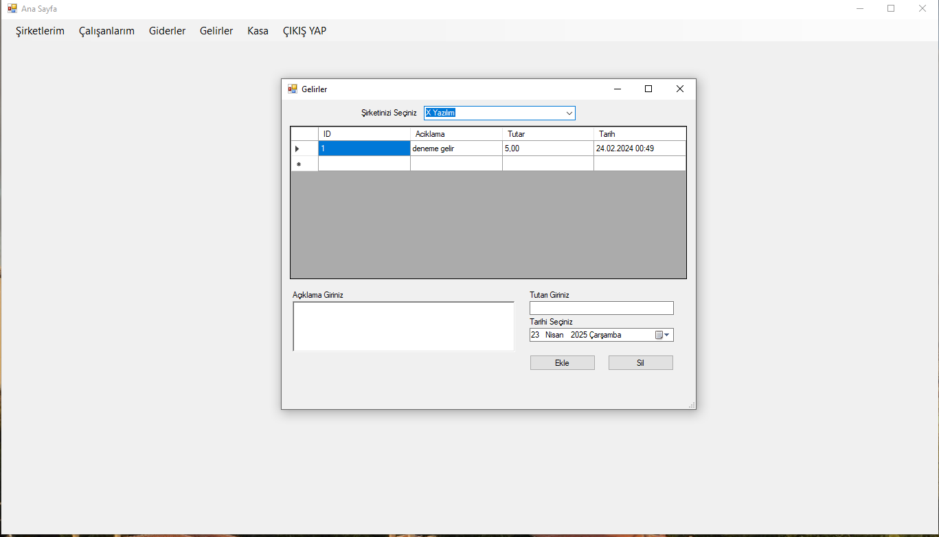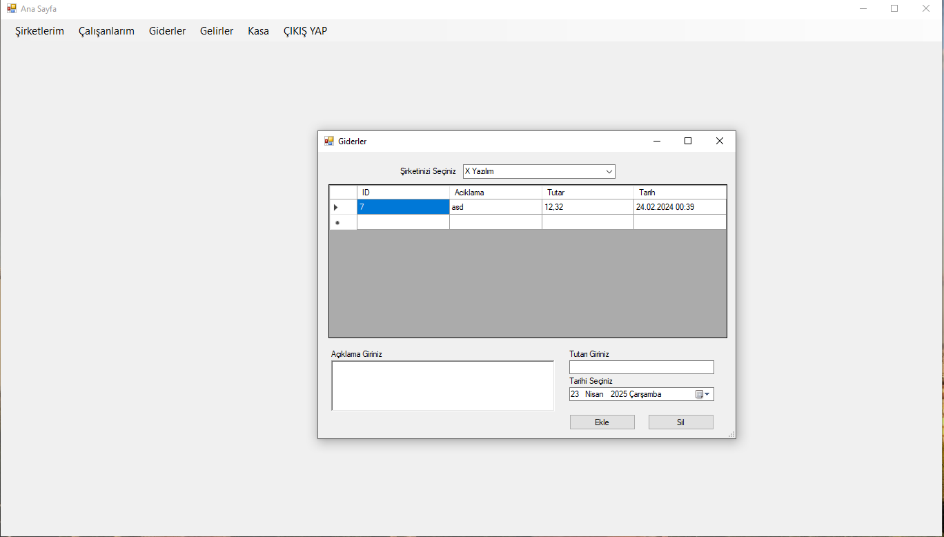 Şirketinize ait çalışanları, gelir ve giderlerinizi tutabileceğiniz masaüstü uygulama