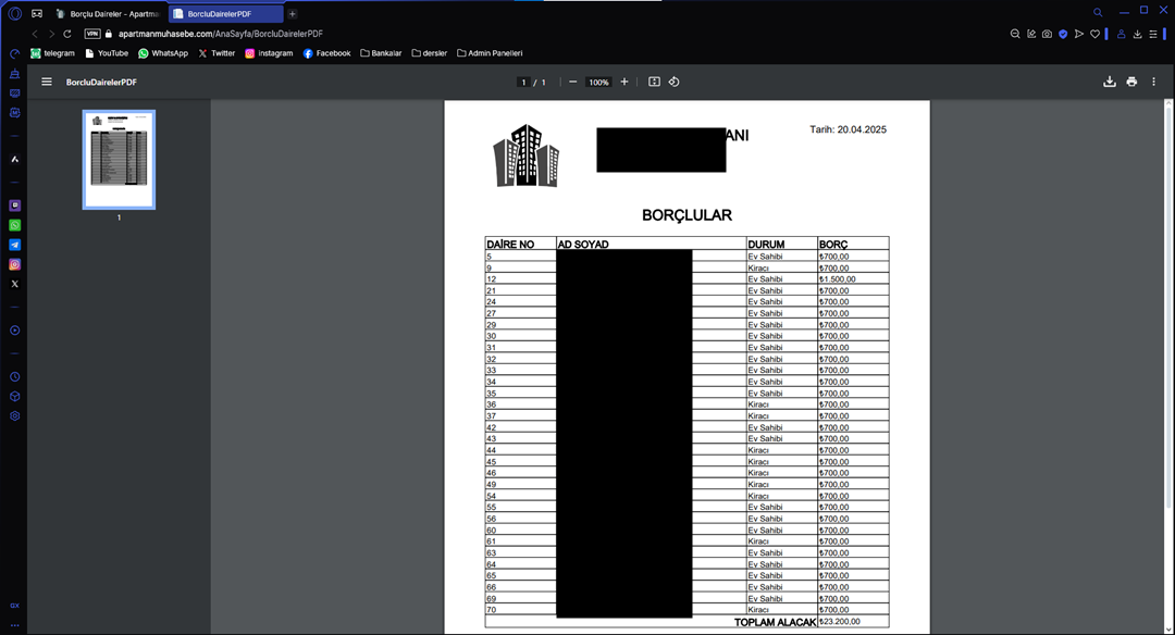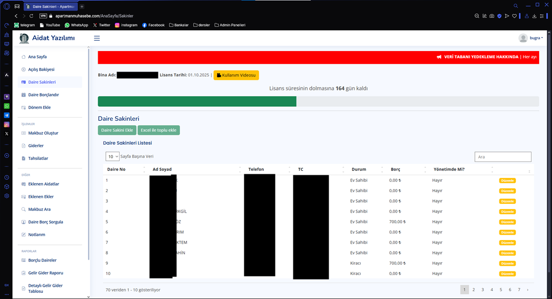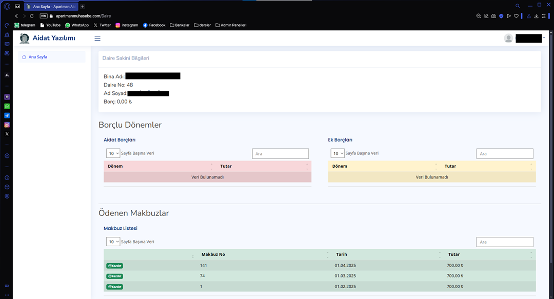APARTMAN AİDAT TAKİP PROGRAMI WEB