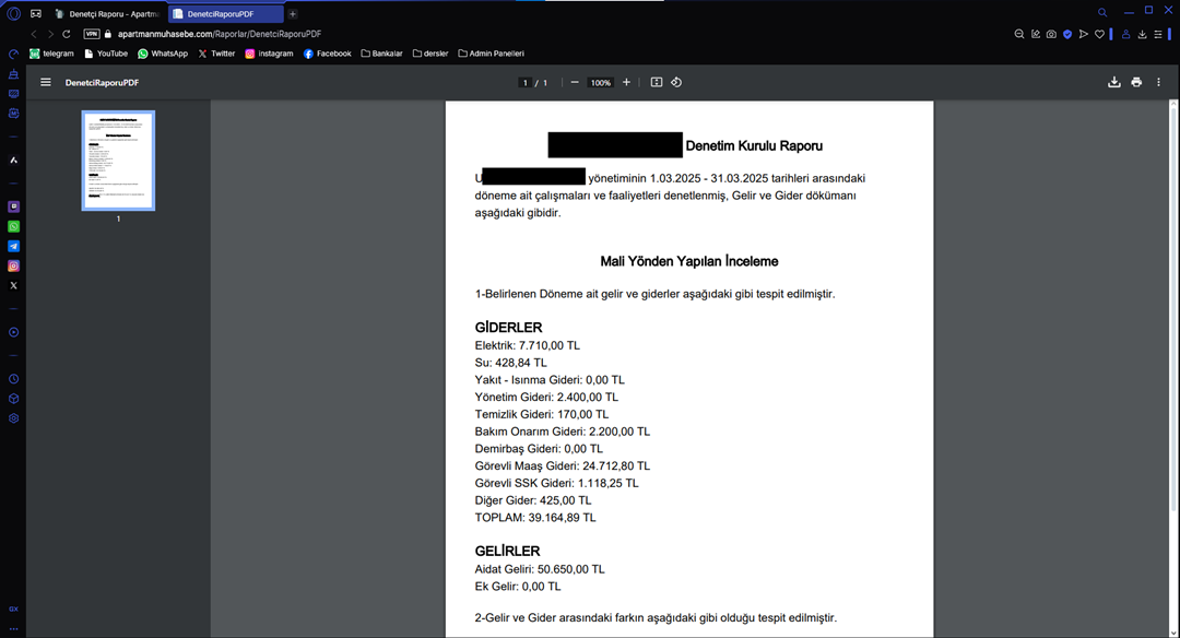 Dairelerin aidat takibini, gelir-gider takibi yapılabilen web tabanlı uygulama