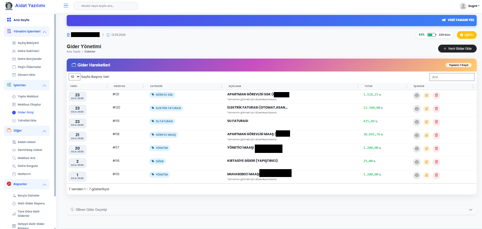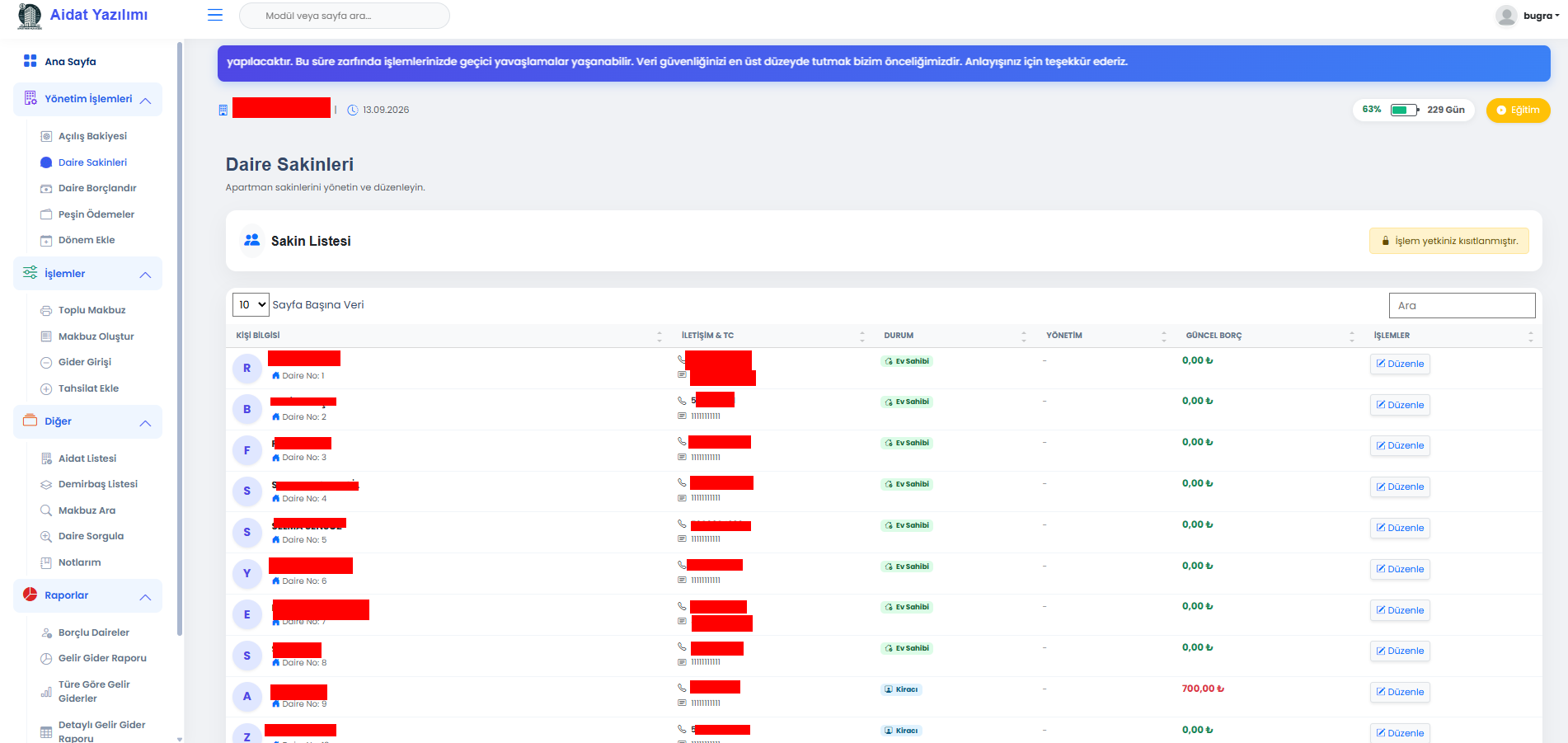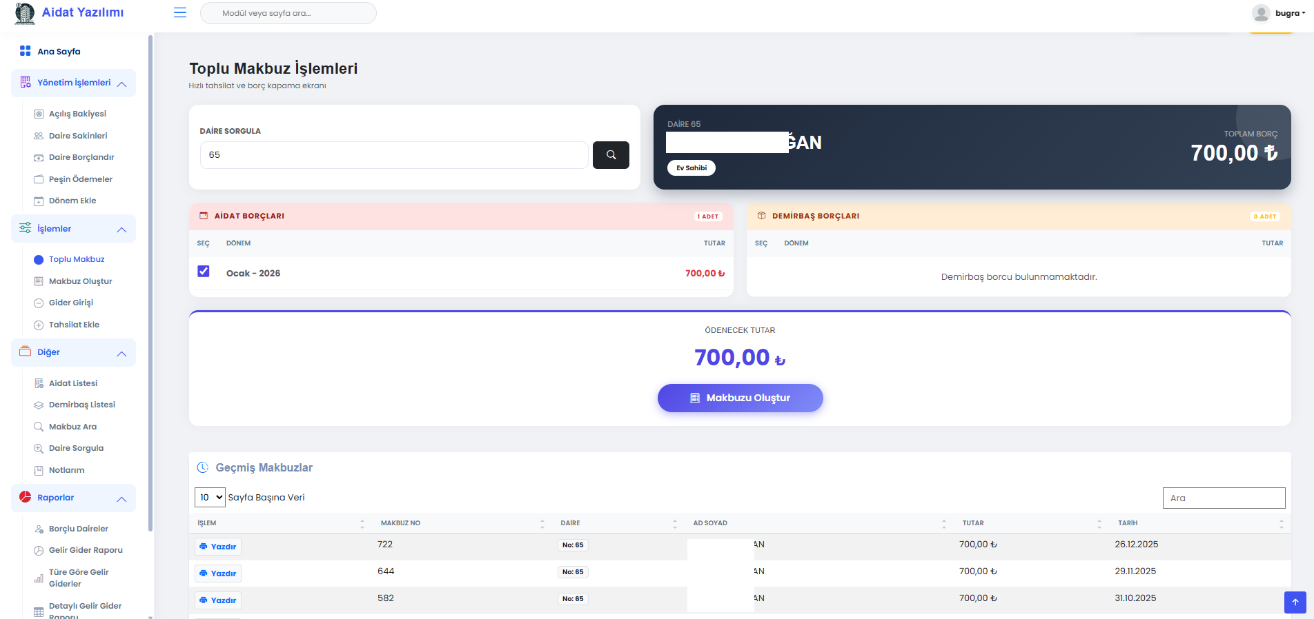 ASP.NET MVC mimarisi ve Monolitik yapı ile geliştirilmiş aidat ve gider yönetim platformu