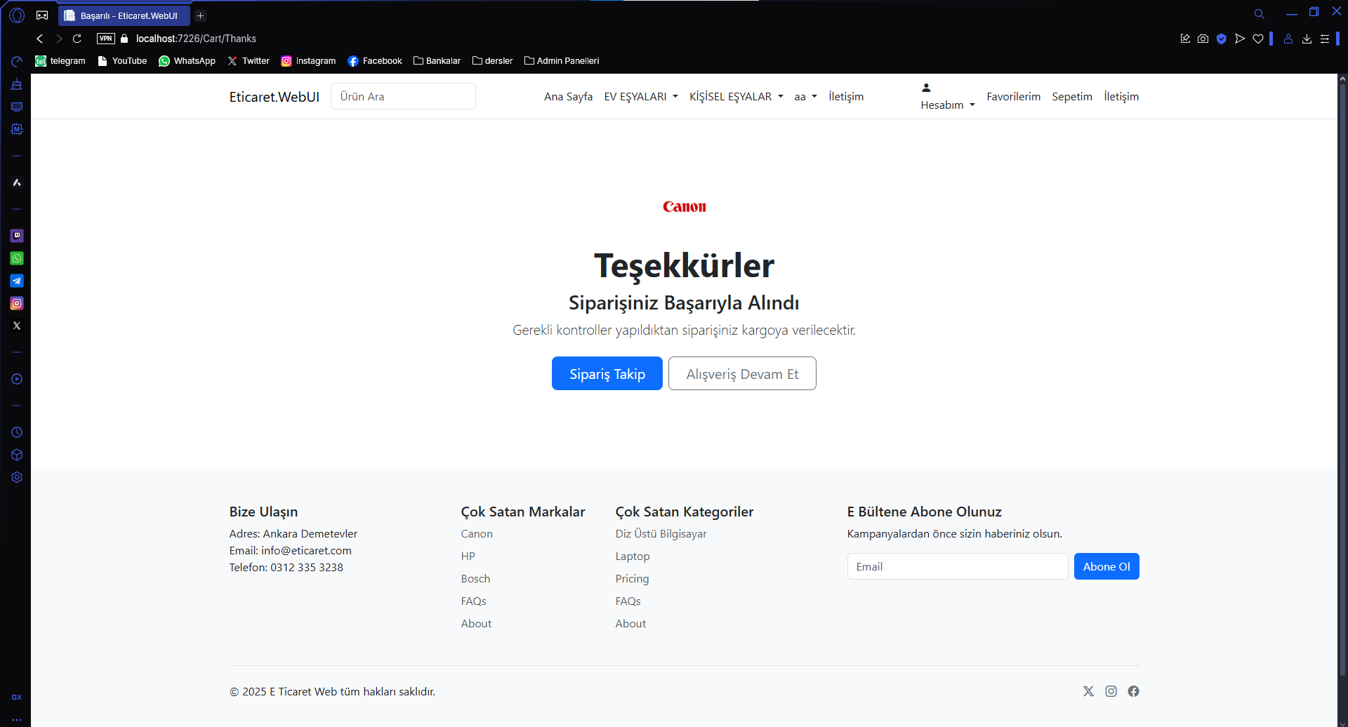 .Net Core MVC ile kredi kartı entegrasyonlu e ticaret sitesi