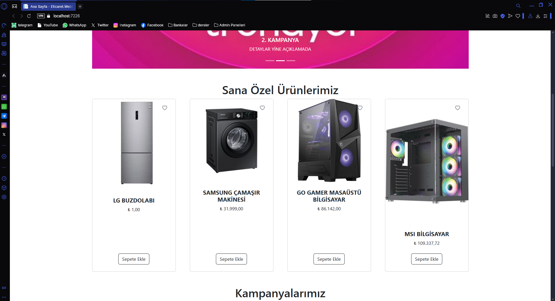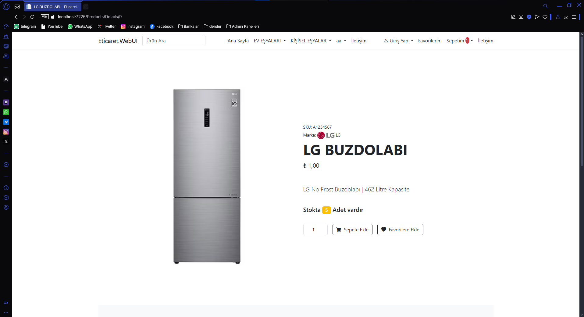 Basit anlamda sepete ekleme, favorilere ekleme satın alma siparişleri görme kısımları mevcut. Admin panelinden sitedeki kullanıcıların siparişlerini takip edebiliyoruz.