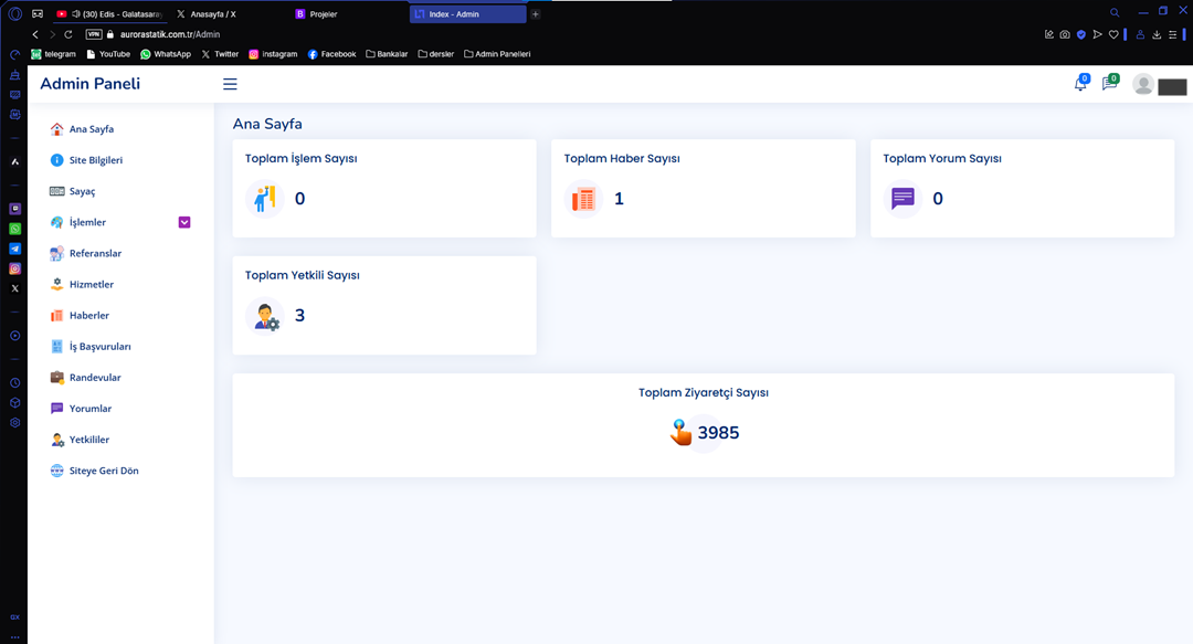Admin Panelinden tüm veriler eklenip, düzenlenebiliyor.