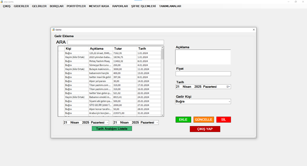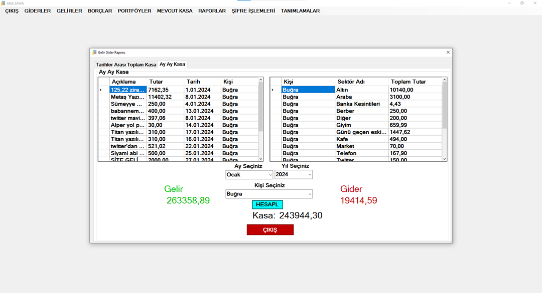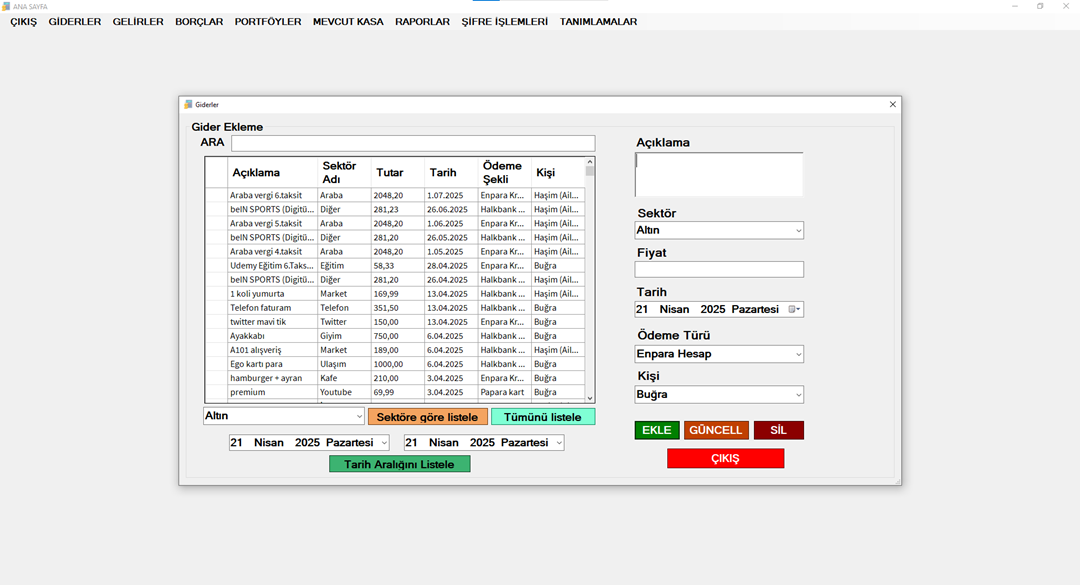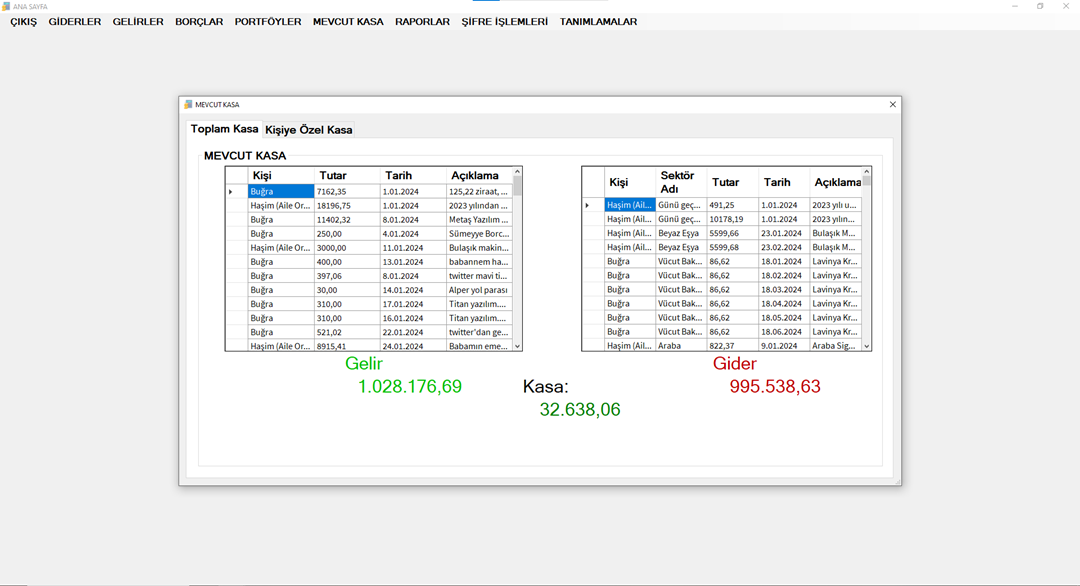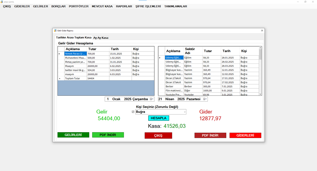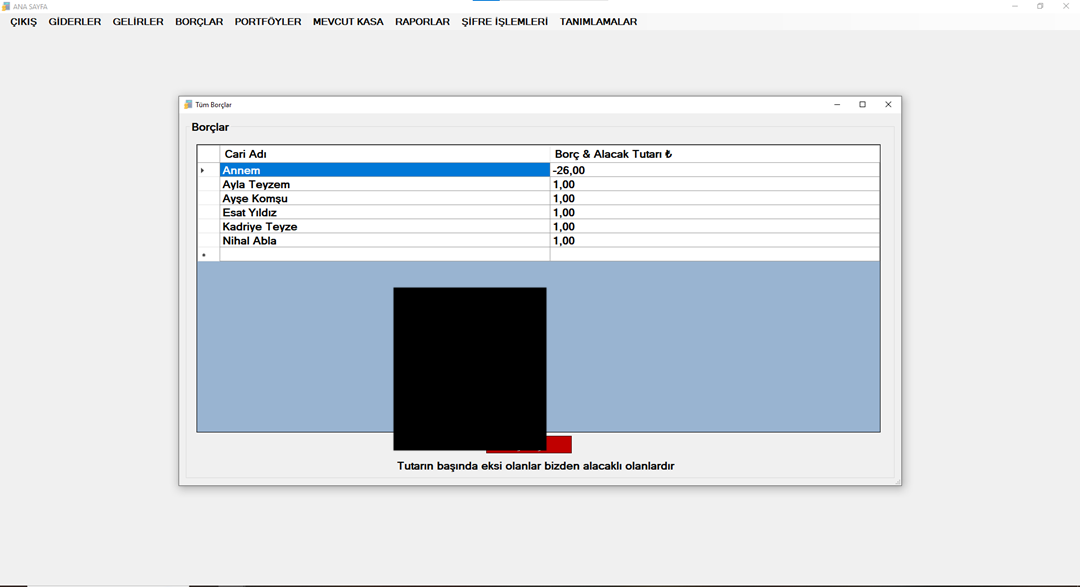 Ayrıca portföyünüzü, borç ve alacaklarınızı tutabiliyorsunuz.