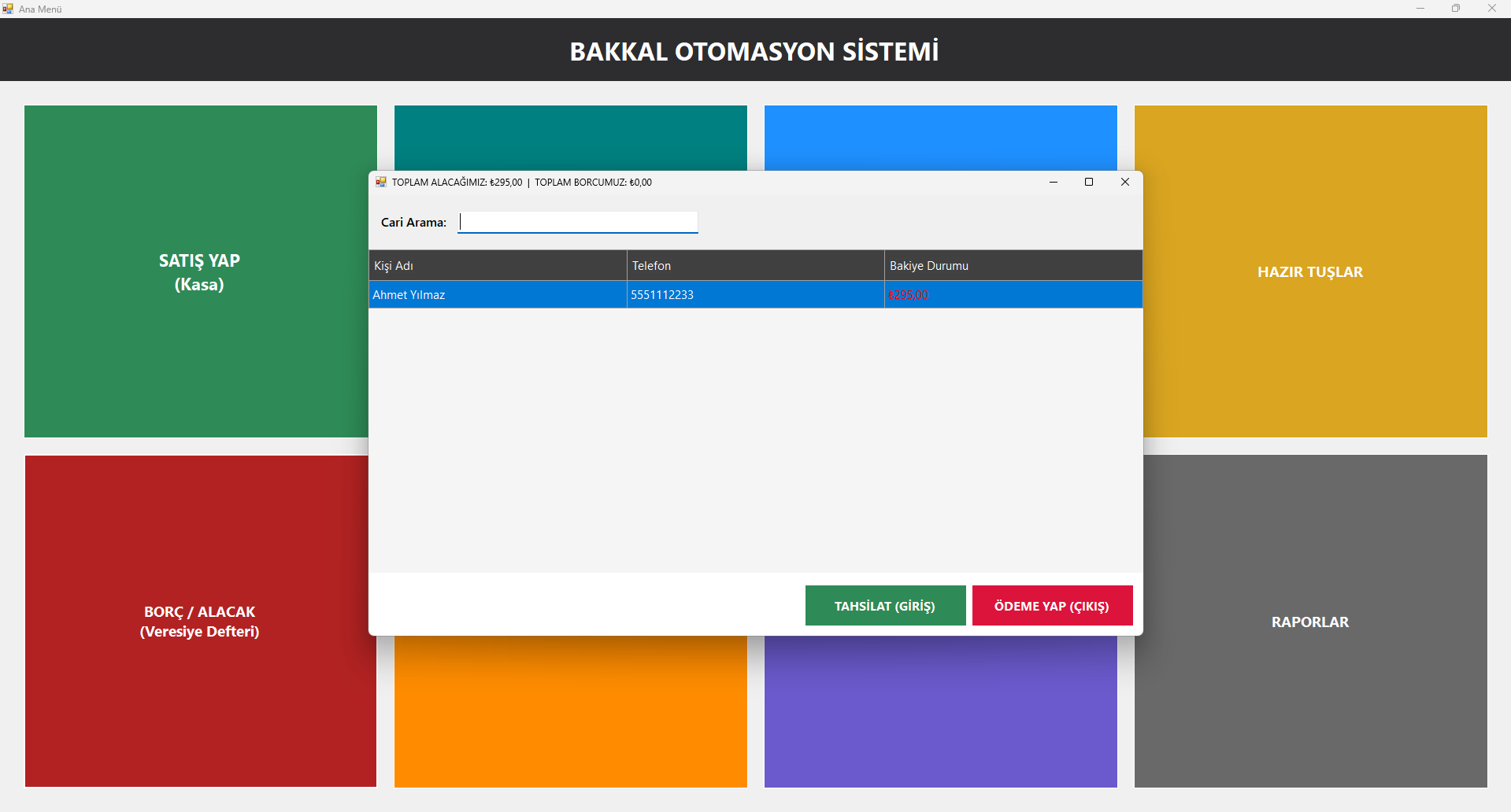System.Drawingkütüphanesi vePrintDocumentsınıfı kullanılarak piksel tabanlı, dinamik fiş yazdırma algoritması geliştirilmiştir. Fişin uzunluğu, satılan ürün sayısına göre otomatik olarak ayarlanır.Gelişmiş Finansal Modüller: Parçalı ödeme alma (Bir kısmı Nakit, bir kısmı Kredi Kartı), Veresiye Defteri yönetimi ve müşteriye özel borçlandırma/tahsilat işlemleri yapılabilir.