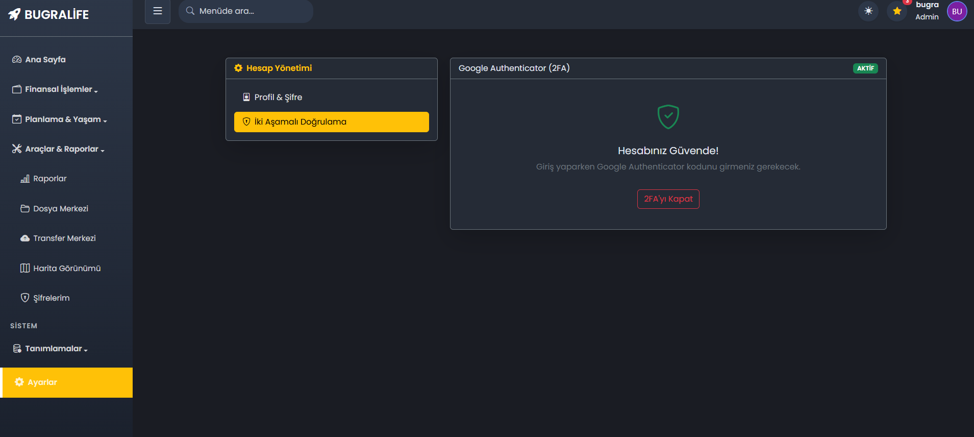 SECURE PERSONAL DASHBOARD (BUGRALİFE)